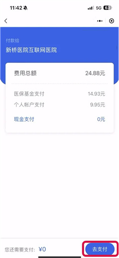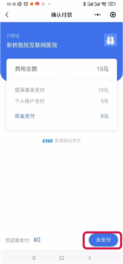填写完成后,重庆市医保患者需选择“医保支付”挂号。