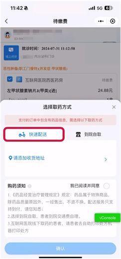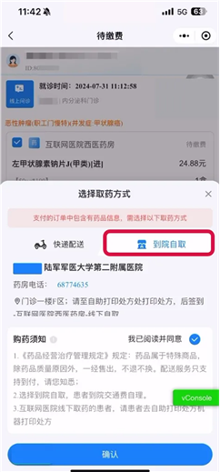②选择取药方式:线上邮寄或到院至门诊药房窗口自取。