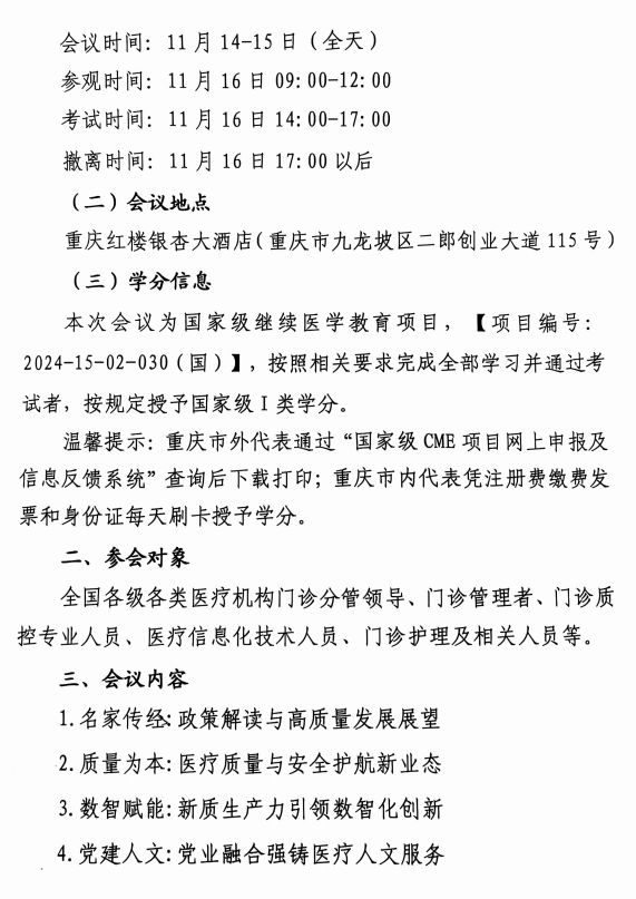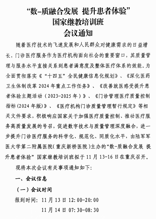 “数-质融合发展 提升患者体验”国家继教培训班会议通知
