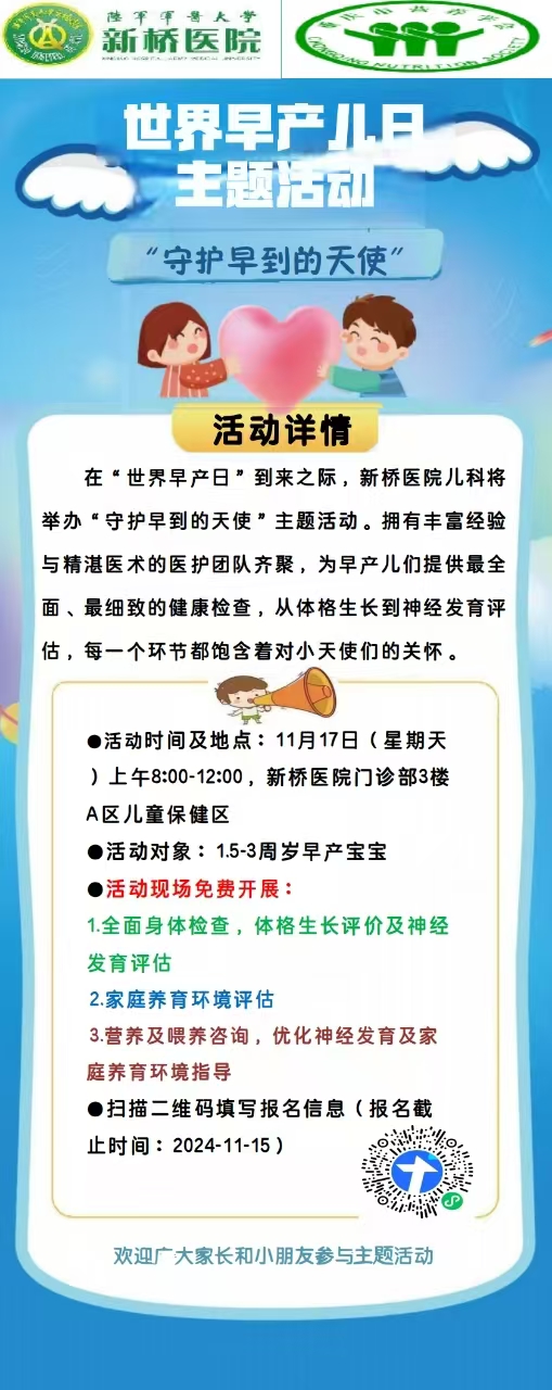 “守护早到的天使—11月17日世界早产儿日义诊活动”来啦!