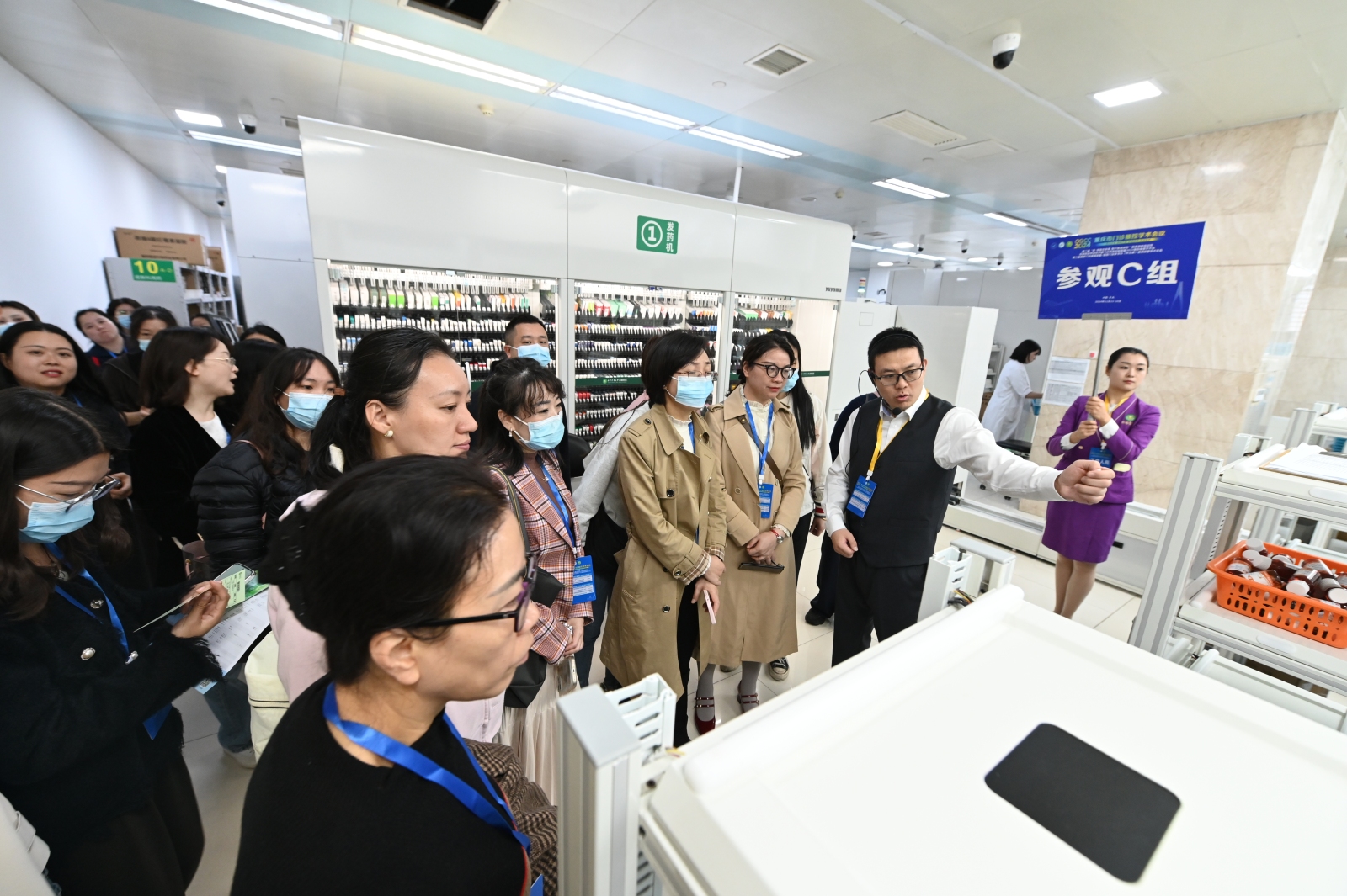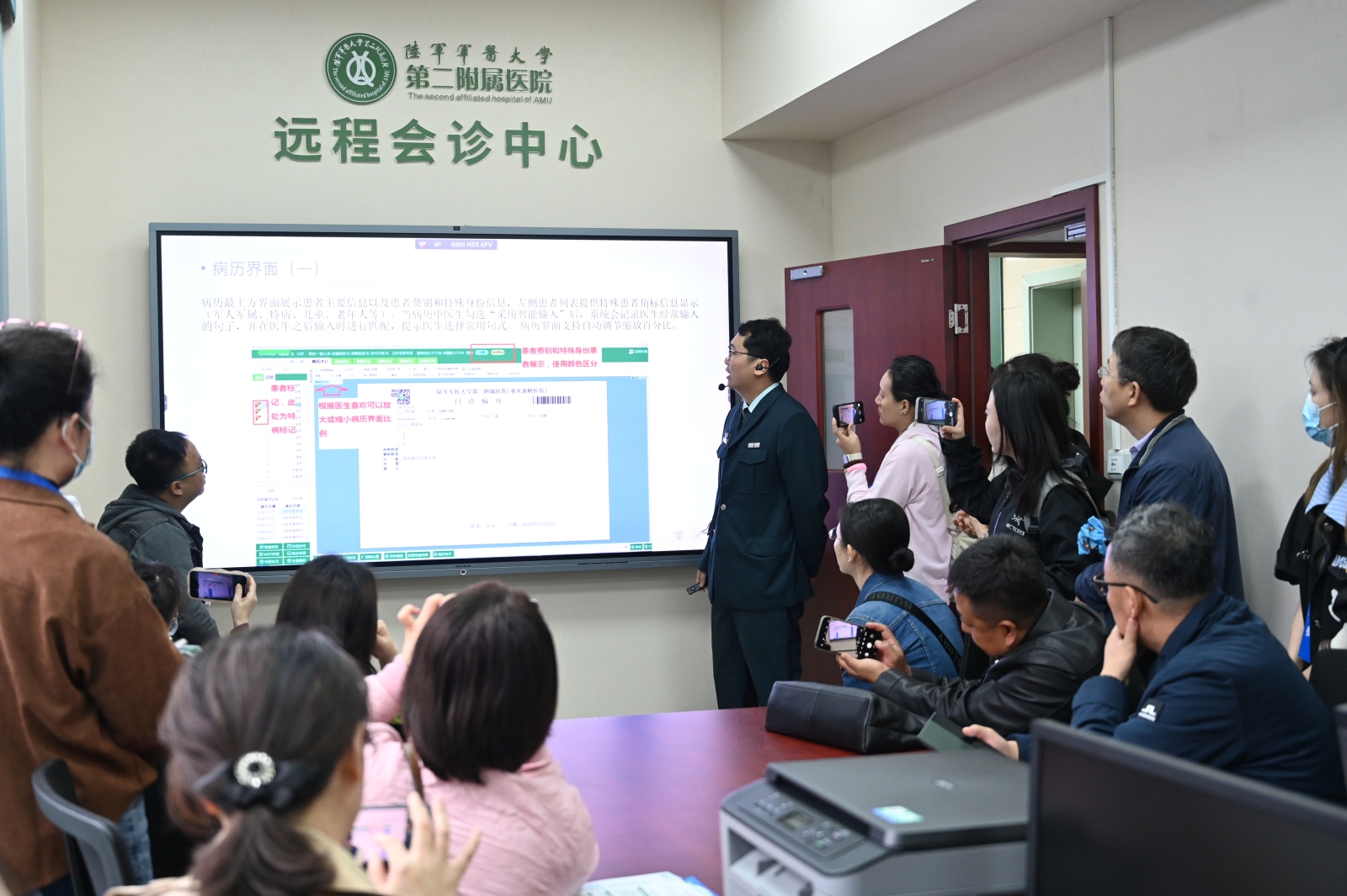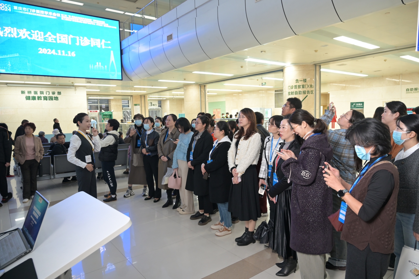 “这是我们的健康教育园地,是为患者开展健康讲座和义诊的场地,每年189场健康科普,每年34场义诊活动。”“这是我们的特需综合服务诊区,多学科疑难病例会诊、特需专家门诊、罕见病门诊都在此进行。”“智慧化药房,提升了患者的就医体验。”……本次会议还采取了现场实践教学,参会代表参观了新桥医院门诊部、生物医学大数据和人工智能中心,大家亲身体验门诊质量管理、智慧门诊建设等方面的成果。通过实地考察和交流,参会者更加深入地了解了医院门诊部在提升患者体验方面的创新举措和成功经验。