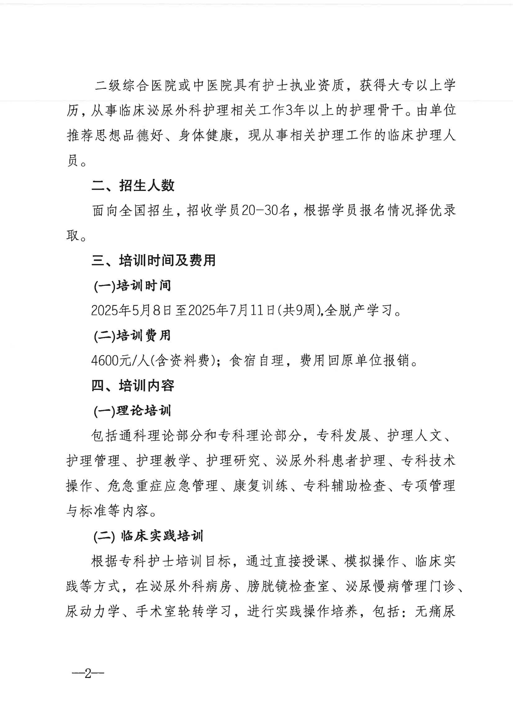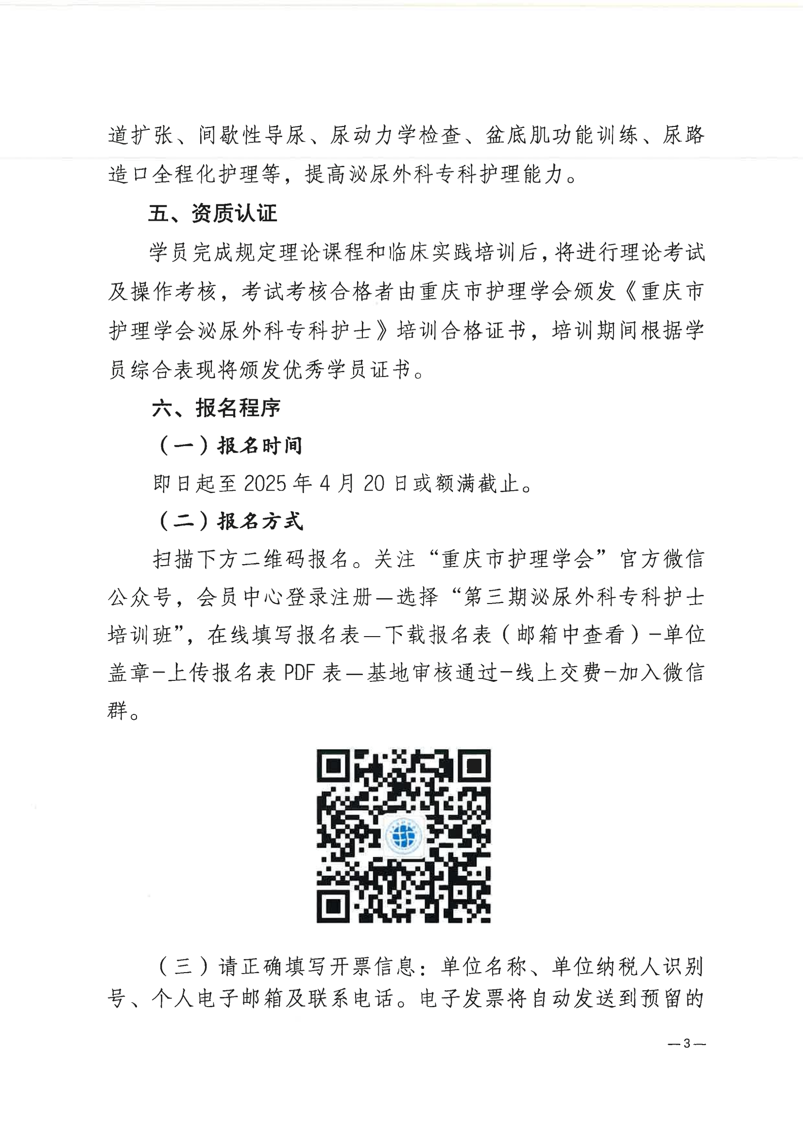 重庆市护理学会关于举办第三期泌尿外科专科护士培训班的通知