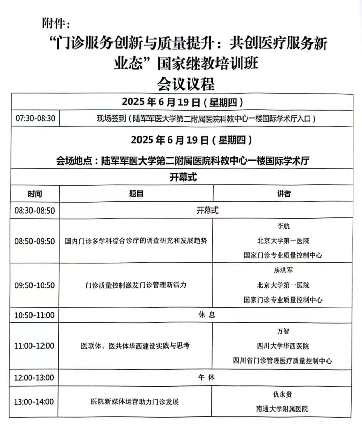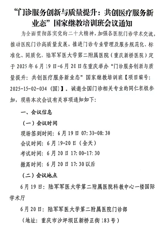 “门诊服务创新与质量提升:共创医疗服务新业态”国家继教培训班会议通知