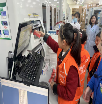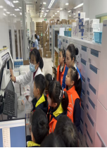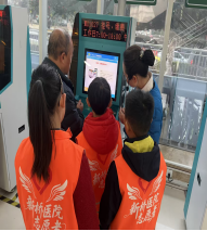 门诊部操作联络员段绍留借助模拟人教具,现场演示心肺复苏术。孩子们围成一圈,屏息凝神,认真观察按压位置、深度和频率。在“安全小超人成长记”实操环节,多名小朋友主动上前尝试,虽然动作稚嫩,眼神却格外专注。“我学会急救技能了,以后也能帮助别人!”一名小男孩兴奋地说。 科技零距离:自助服务与智慧药房 体验环节,孩子们分成两组深入门诊一线。