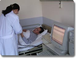 PSG是目前当今世界上诊断鼾症及睡眠呼吸暂停综合症的最先进的检查方法,同时也是确诊的金标准。多导睡眠图检查是监测患者在睡眠过程中的脑电图、心电图、眼动图、肌动图、末端氧饱和度、胸式呼吸、腹式呼吸、口鼻气流及肢体活动等十余项指标,了解患者睡眠情况。我科自1995年引进美国伟康公司的RHK-5500型多导睡眠监测仪以来,现已累计病例1200余例次,接受UPPP及CPAP者500余例。