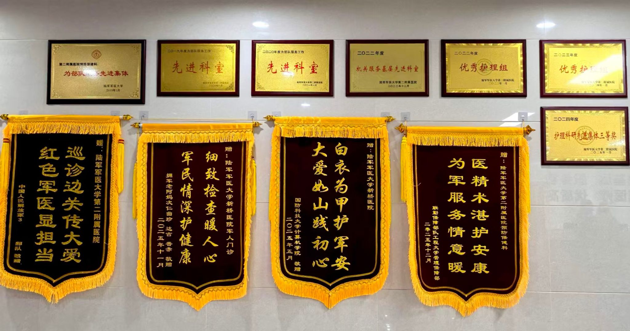 在医院党委的坚强领导下,预防保健科深耕为部队服务工作,始终将制度建设作为核心抓手,牵头制定并落地系列配套制度措施,严格对标为部队服务各项规定要求,持续优化服务流程、提升保障质效,以高质量高标准完成军队人员医疗保障任务,有力彰显了为部队服务 “新桥”品牌。科室凭借扎实的工作成效,先后获评陆军军医大学 “为部队服务先进集体”、医院 “先进科室”“优秀护理组” 等多项荣誉;累计收到基层部队及官兵赠送的锦旗、感谢信百余次。